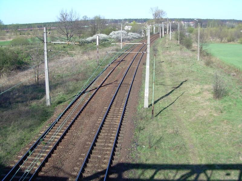 Wschodnia strona dworca. 67km linii 140, czyli widok z peronu trzeciego w kierunku Suminy/Rybnika (północny-wschód). W tle czerwony budynek nastawni Na2.