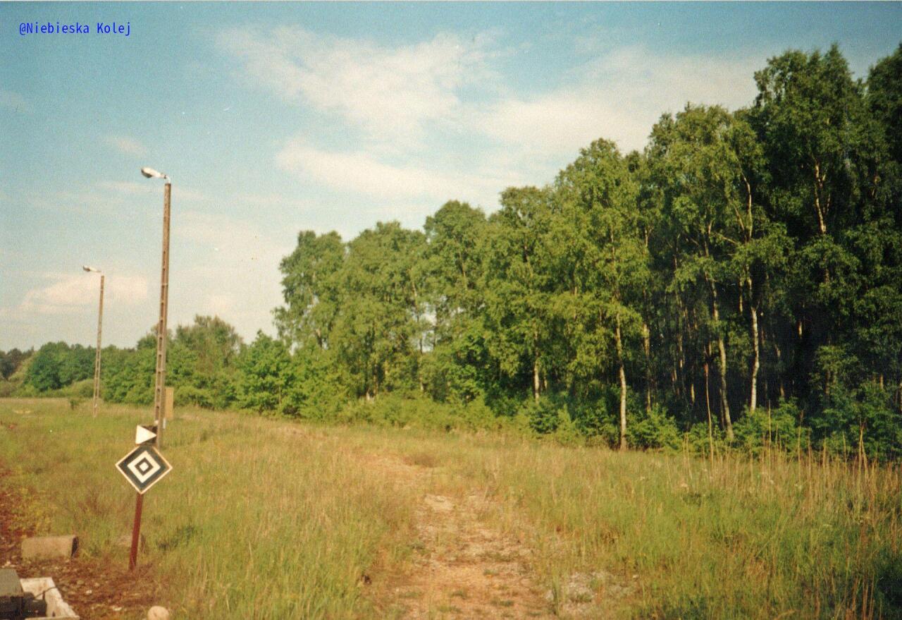 Tu był tor wąskotorowy, prowadził do stacji z rozebranego skrzyżowania torów, około 1998.