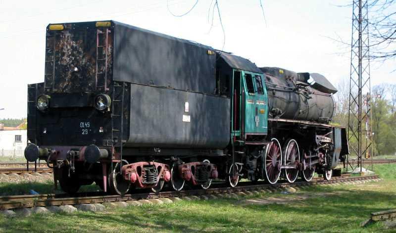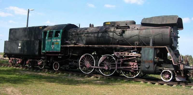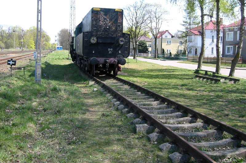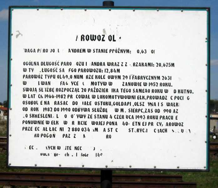 Stare Juchy. Parowóz-pomnik na stacji. Widok w kierunku Ełku.