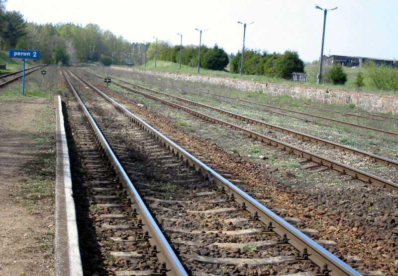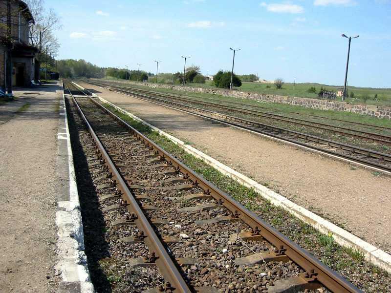 Stare Juchy. Widok ze stacji kolejowej na tory w kierunku Ełku.