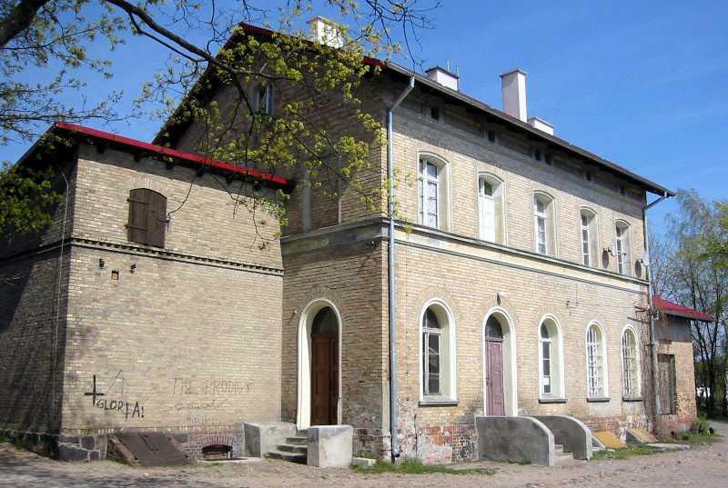 Stare Juchy. Budynek dworcowy od strony wsi.
