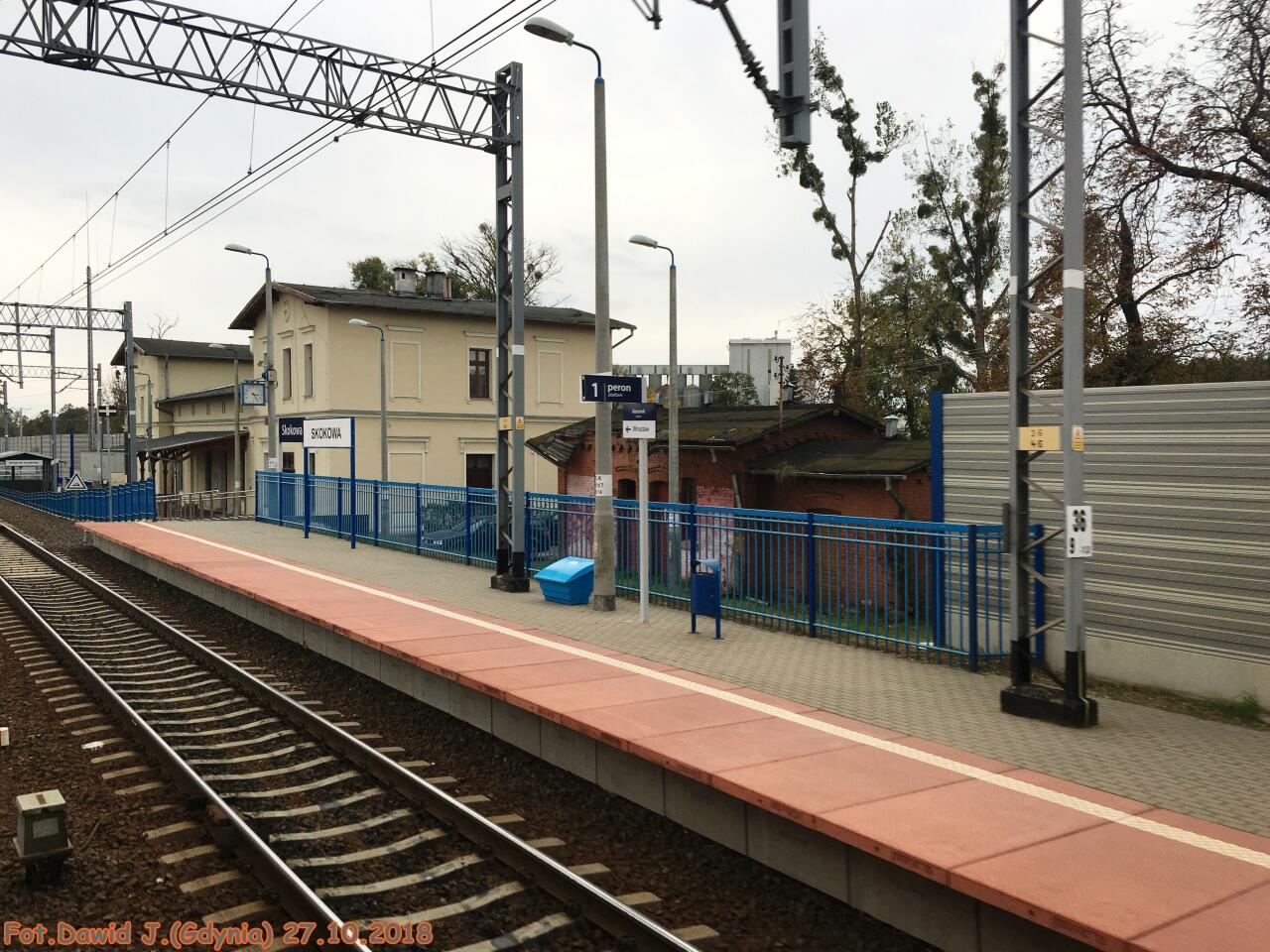 W 1968 lub 1969 roku byłem uczestnikiem katastrofy kolejowej przed stacją Skokowa, gdzie pociąg pospieszny, którym jechałem z Poznania do Wrocławia najechał pełną prędkością na tył manewrującego pociągu towarowego. Była przynajmniej jedna ofiara śmiertelna (kierownik poc. towarowego). (info od: Sławomir Walkowiak, 2008-01-26) 2015-05: Układ torowy stacji został zmodernizowany, niestety przy okazji odcięto od sieci obydwie bocznice kolejowe prowadzące do zakładów przemysłowych. Wybudowano dwa nowe perony jednokrąwędziowe połączone przejściem podziemnym. (info: wasiukibic) 2015-05: Budynek dworca został wyremontowany, powstała nowa strażnica na przejeździe kolejowym z drogą 342, wyburzono także wieżę ciśnień. (info: wasiukibic). |