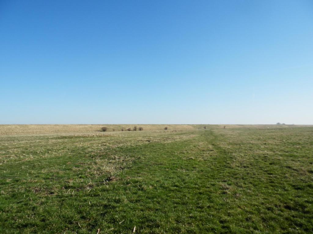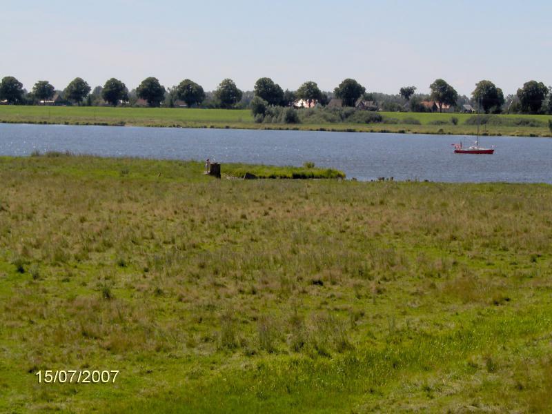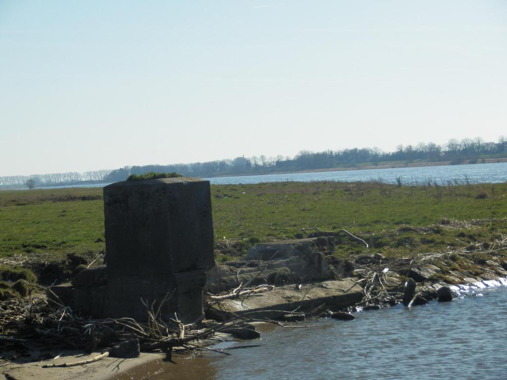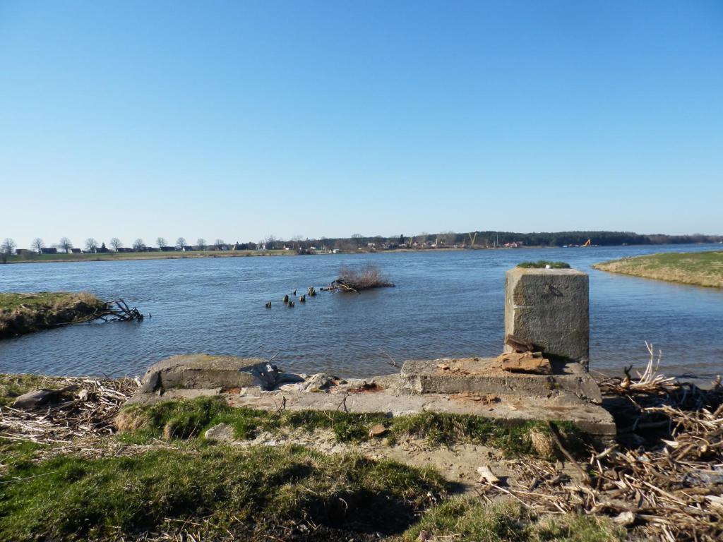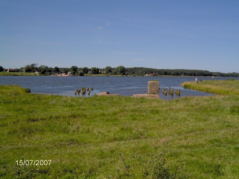 Za plecami przeprawa promowa. Widok na miejsce gdzie wznosiło się na wał torowisko.