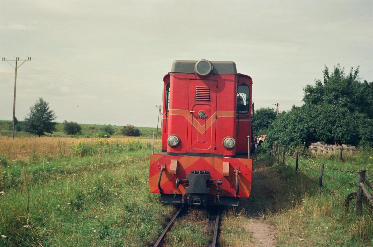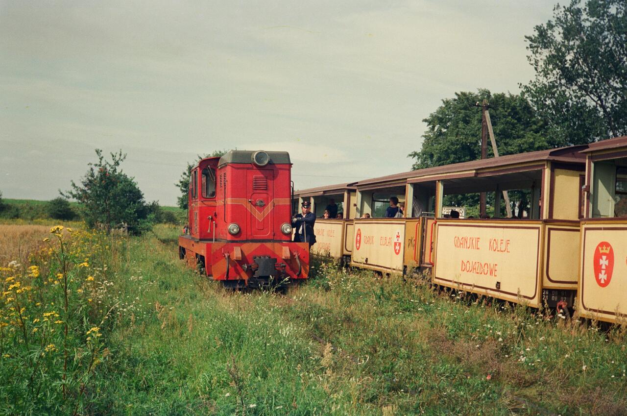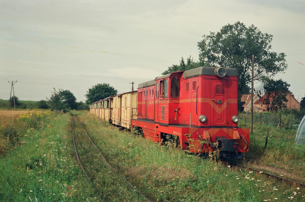 Lokomotywa Lxd2-244 po przyprowadzeniu pociągu MS 5418 relacji (Sztutowo) Stegna Gdańska - Prawy Brzeg Wisły w trakcie "oblotu" składu - zostanie zatrudniona do podjęcia pociągu MS 5417 relacji Prawy Brzeg Wisły - Stegna Gdańska. Widok w kierunku końca linii.