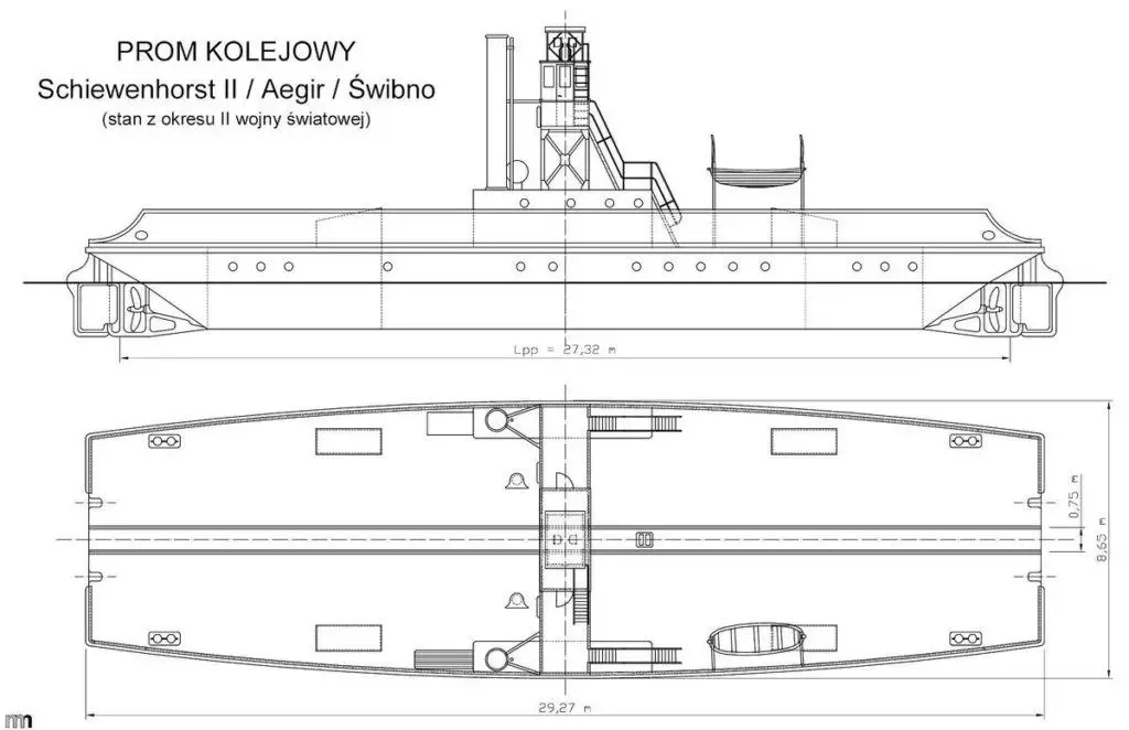 Pierwotnie prom ochrzczono imieniem Aegir. W marcu 1945 został zatopiony koło Przegaliny przez wycofujące się wojska niemieckie.