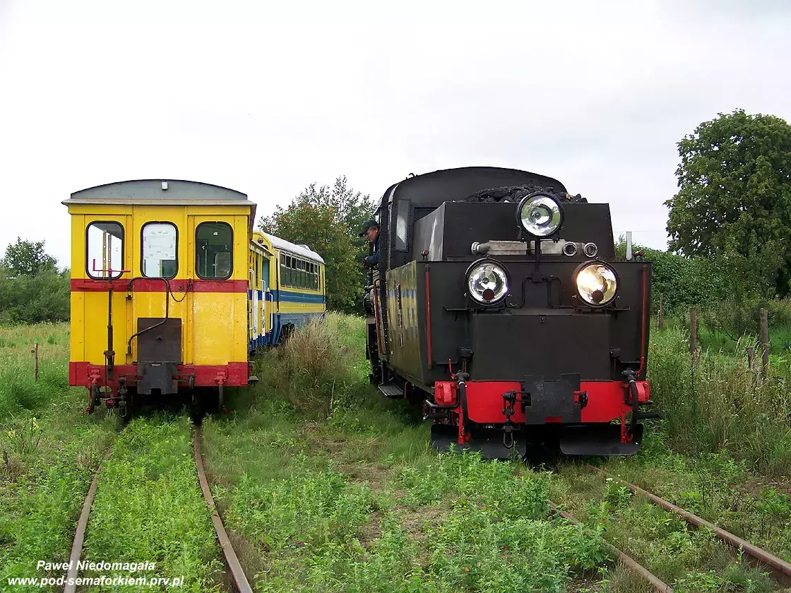 Oblot składu pasażerskiego, który przyjechał tu ze Sztutowa, przez parowóz Px48-1907. Pociąg niebawem odjedzie do Nowego Dworu Gdańskiego Wąskotorowego.