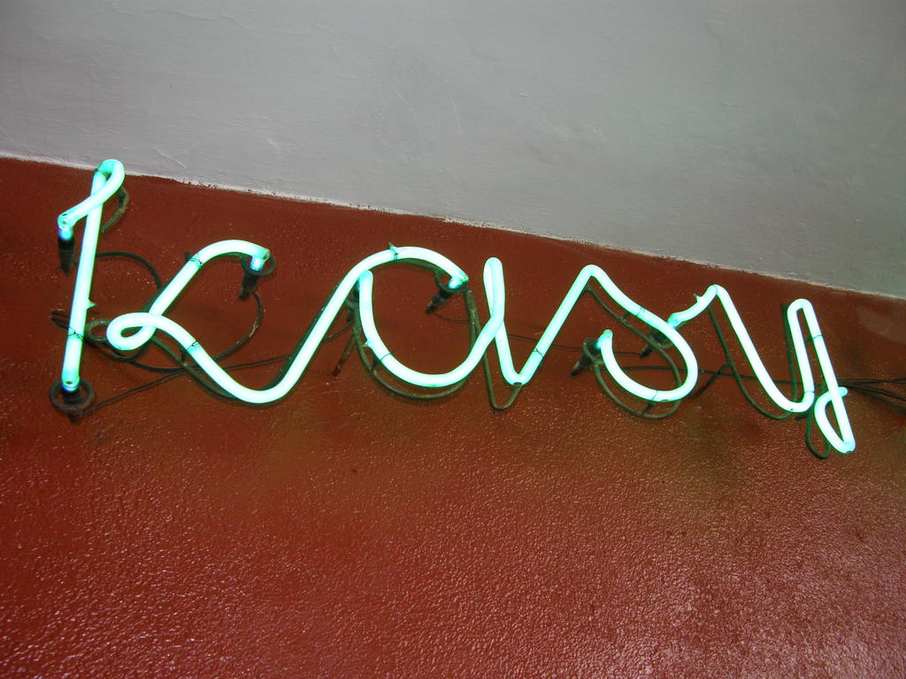 Budynek dworcowy wewnątrz. Hol główny. Wygaszony neon "Rozkłady jazdy". Widok w kierunku Cieszyna i Czechowic-Dziedzic. 76,4 km/ 13,1 km.