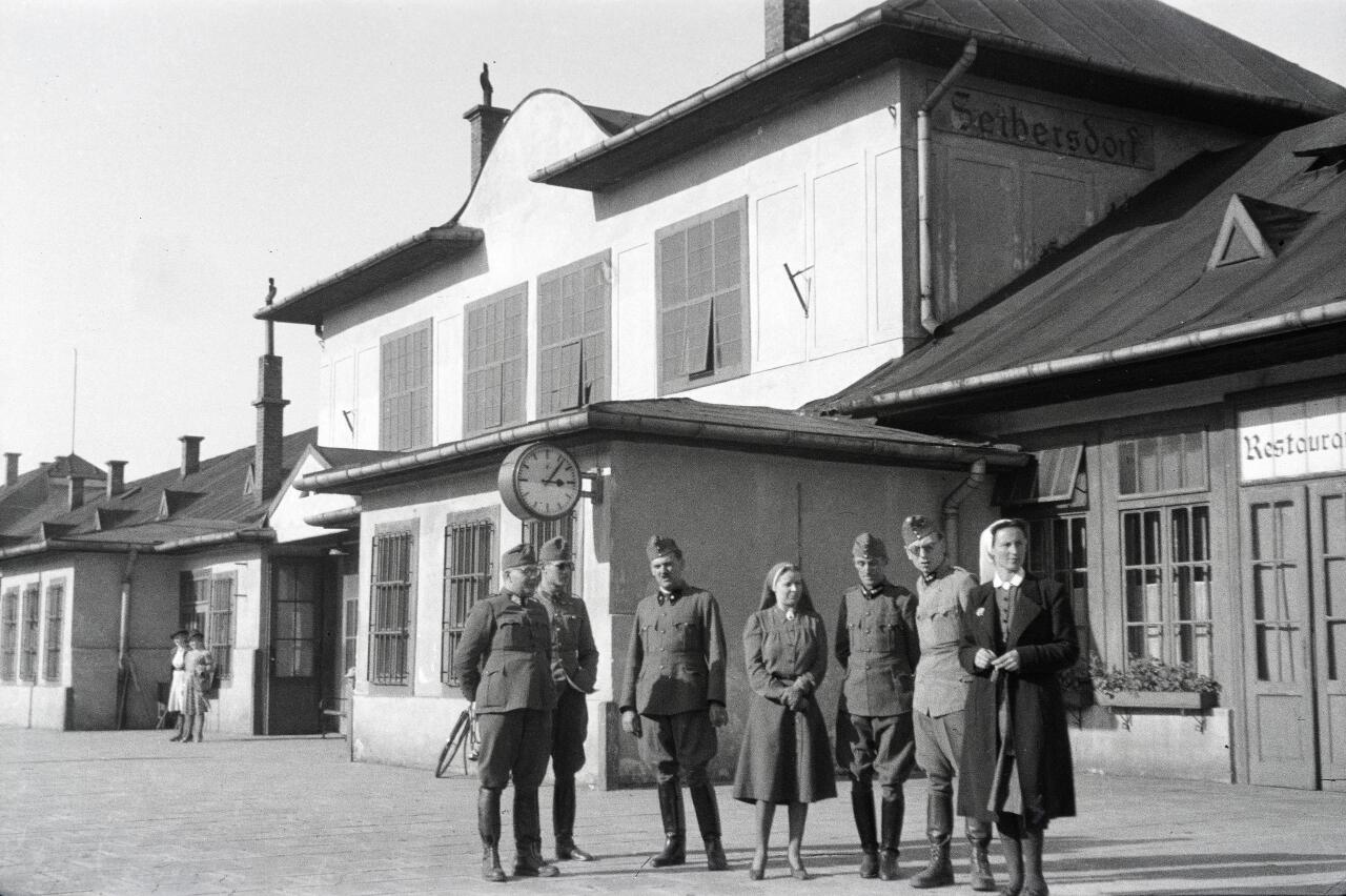Przed dworcem na stacji Zebrzydowice - rok 1942.