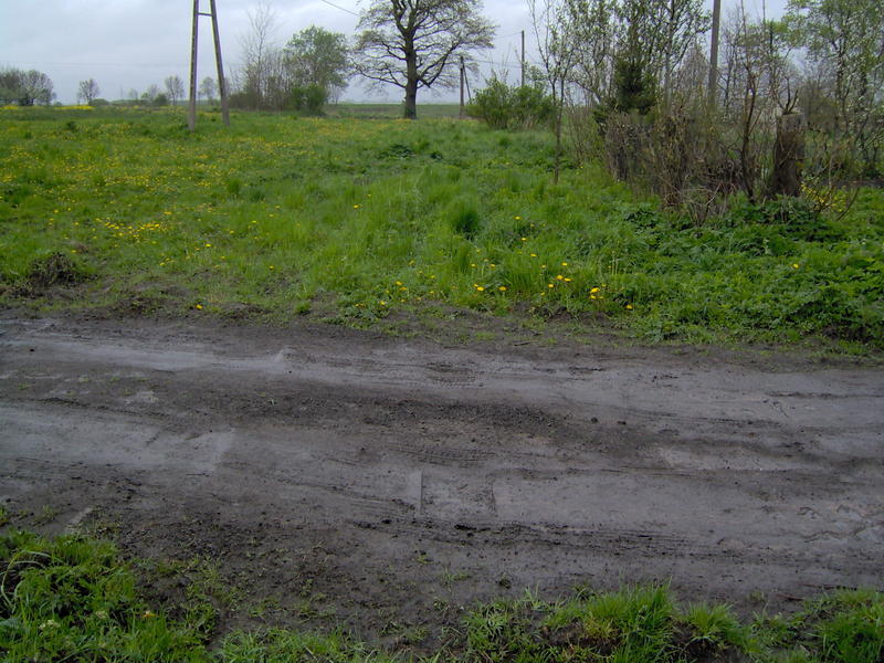 | Przy przystanku nadal widać tory w polnej drodze, a kawałek dalej przepust. kilkaset metrów dalej była ładownia Świerki Gdańskie. |