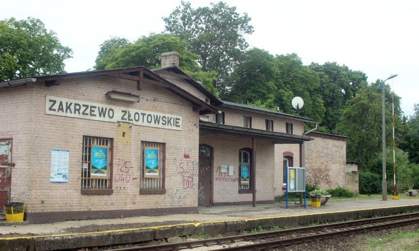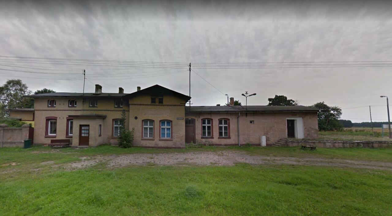 Zakrzewo. Widok na budynek PKP od strony miejscowości.