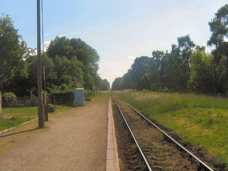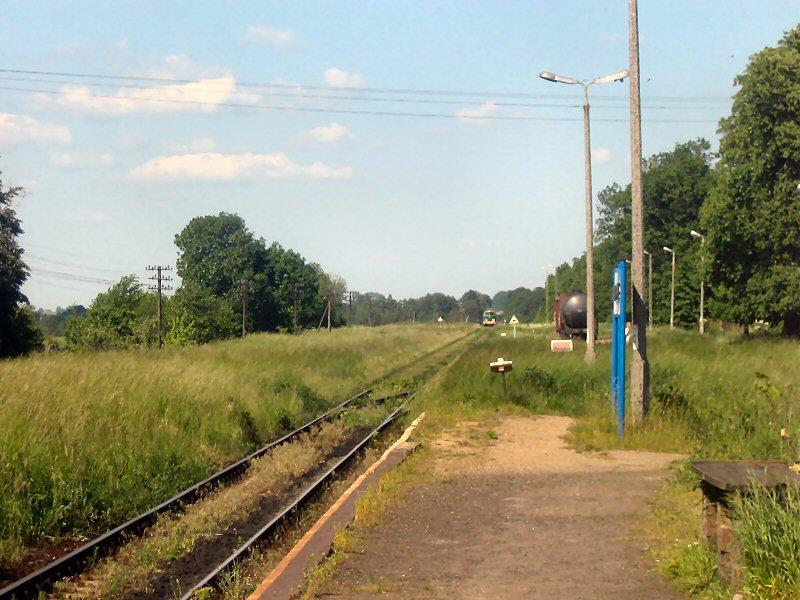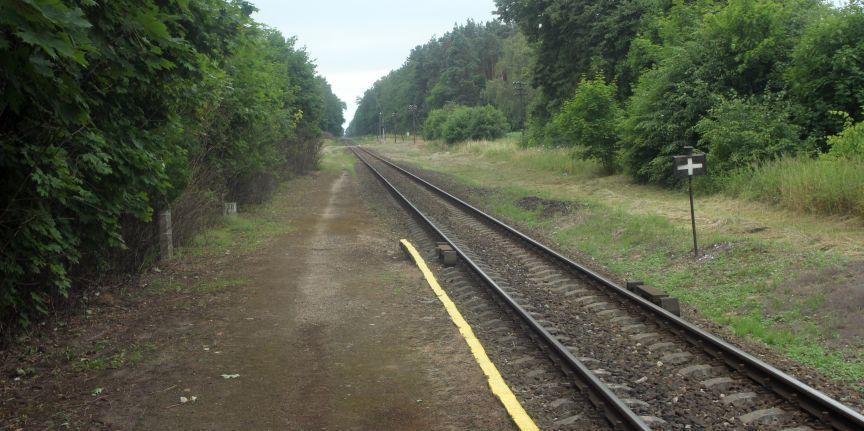 Widok w kierunku Chojnic (skład z wagonami do remontu);