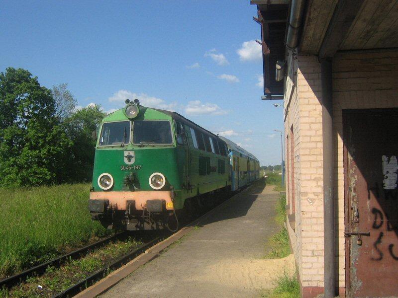 Zakrzewo. Nadjechał pociąg osobowy do Piły, na szczęści tym razem z 3 wagonami, ostatnio niestety jeździ tylko z 2, oszczędności gdzie tylko się da…