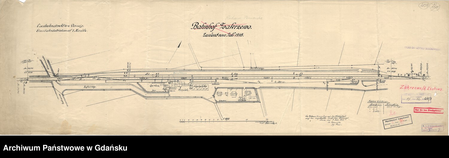 Eisenbahndirektion Danzig. Eisenbahnbetriebsamt 1 Konitz. Bahnhof Zakrzewo. Zustand vom Juli 1918.