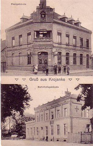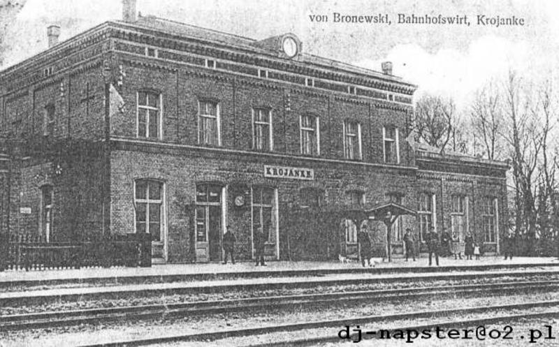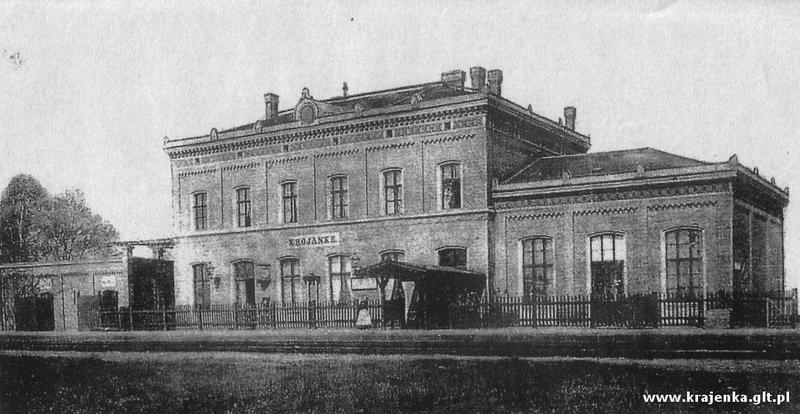 Dworzec kolejowy w Krajence. Widok od strony peronów i wjazdu z Piły. Zdjęcie z czasów przedwojennych.