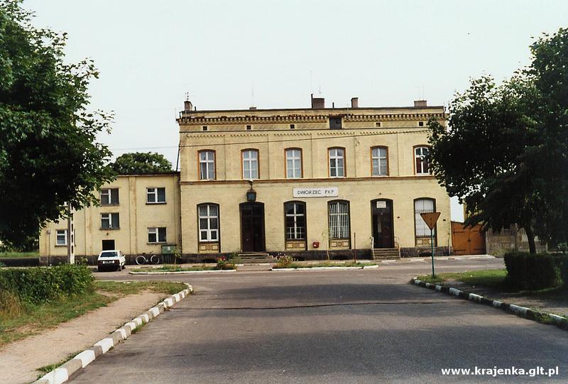 "Tur" w Krajence. Widok w kierunku Piły (południowy-zachód). Z lewej budynek dworca.