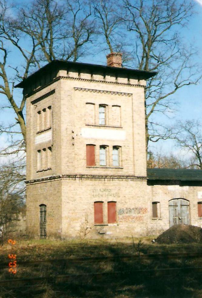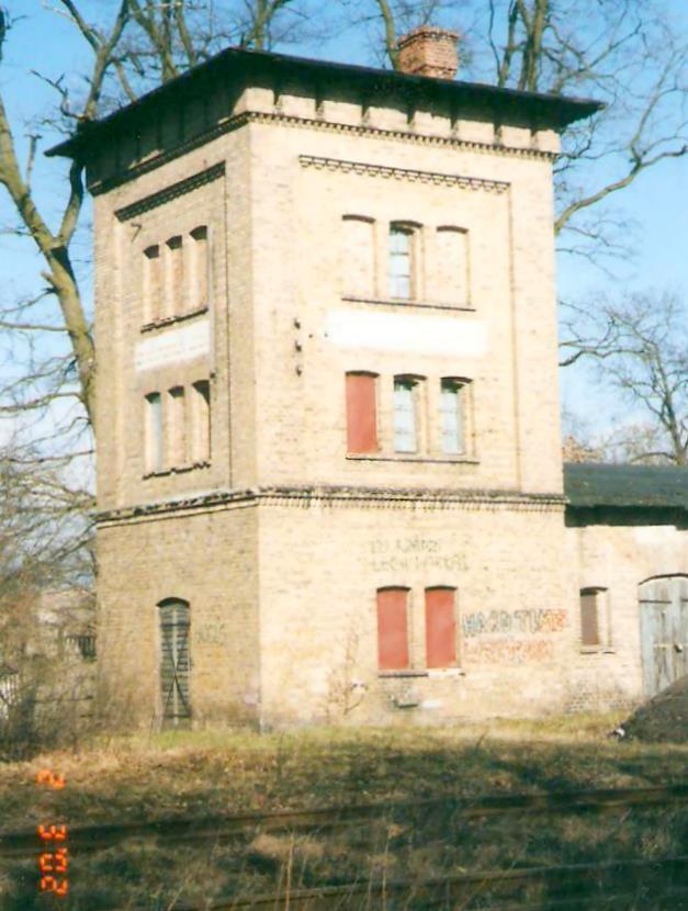 Wieża wodna od strony peronów: w prawo dworzec, w lewo Piła.