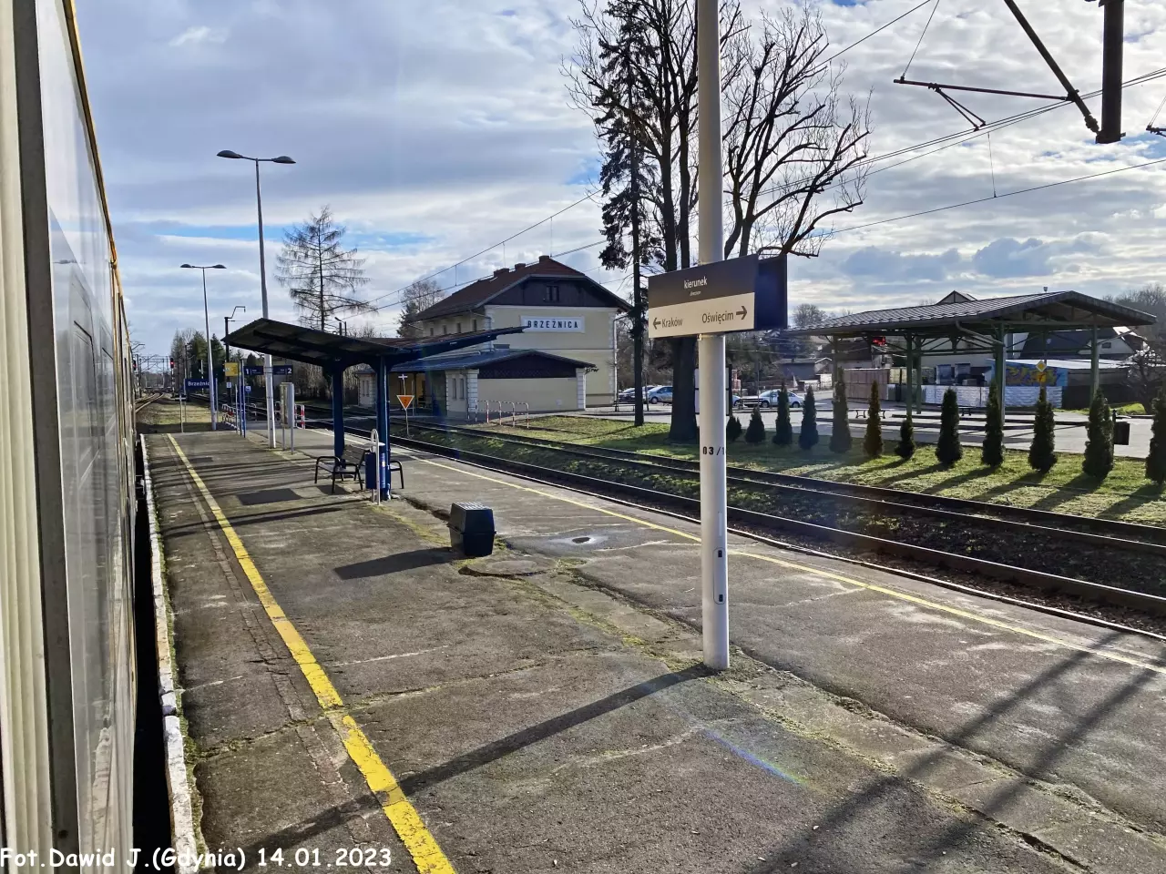 Od Lutego 2023 roku ilość kursujących pociągów została zmniejszona przez prace na odcinku Podbory Skawińskie – Brzeźnica. Aktualnie pociągi jeżdżą tu po tylko jednym torze i czasami mijają się w Brzeźnicy. Aktualnie czynna jest tylko jedna krawędź peronowa. Planowany koniec remontu to Zima 2023 roku. (info: Marcin H., oswiecimonline) Od 1 października 2022 roku kursują tu pociągi KMŁ SKA2 Kraków Główny – Przeciszów. Kursuje także ruch towarowy w formie PKP Cargo i RAIŁ POLSKA. Co roku przejeżdża tu pociąg Polregio „Energylandia” od 1 do 31 Sierpnia. (info: Marcin H., oswiecimonline) W 2022 roku dworzec przeszedł przez kompletną przebudowe. Aktywna jest tu teraz restauracja gastronomiczna "Stacja Smaków" i automatyczna kasa Kolei Małopolskich. |
