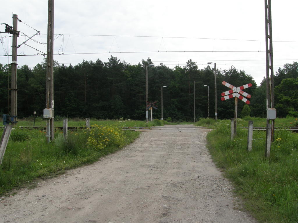 Przejazd drogowy w północnej części stacji. Widok w stronę Łodzi. 39,7 km.