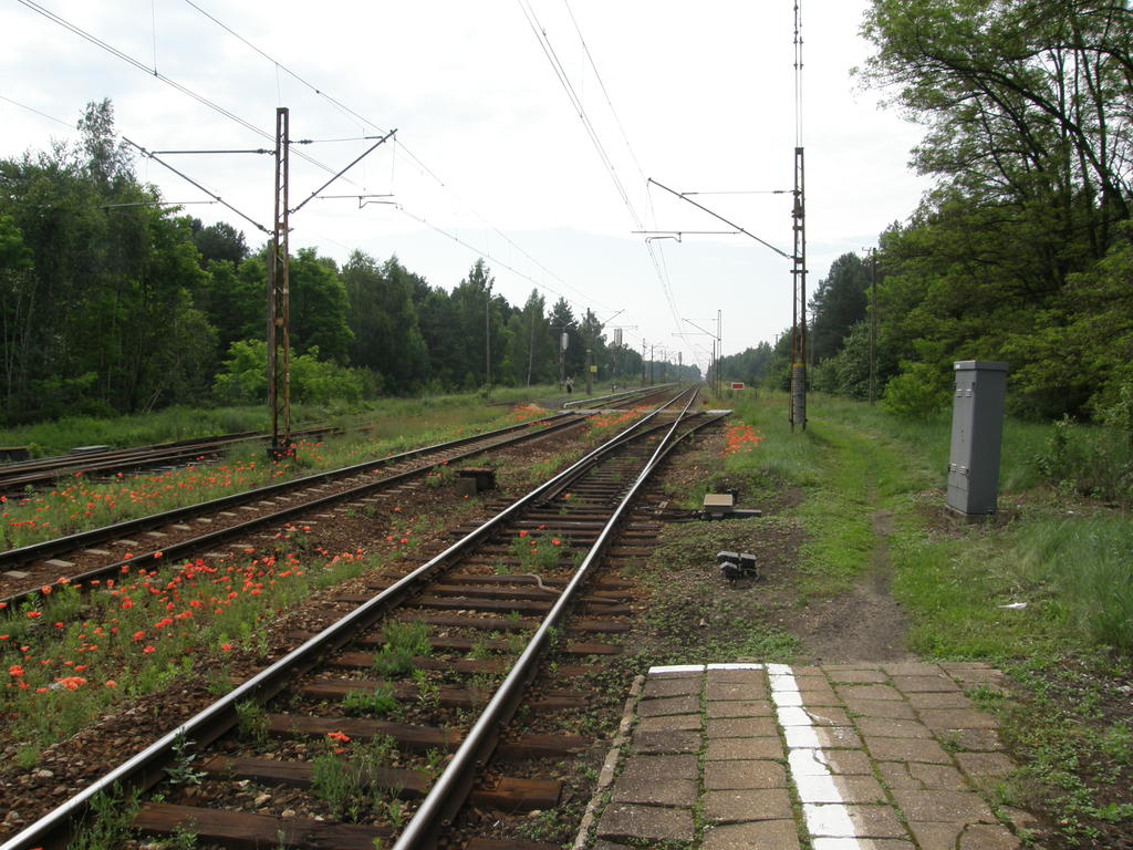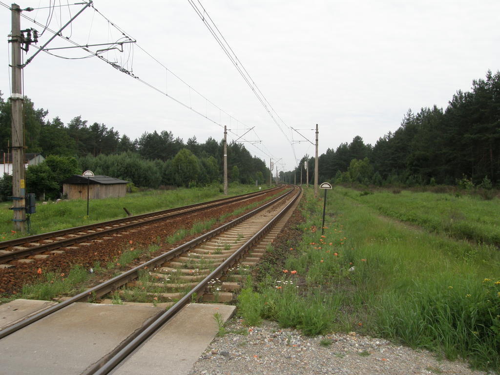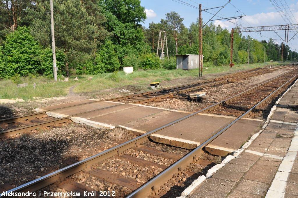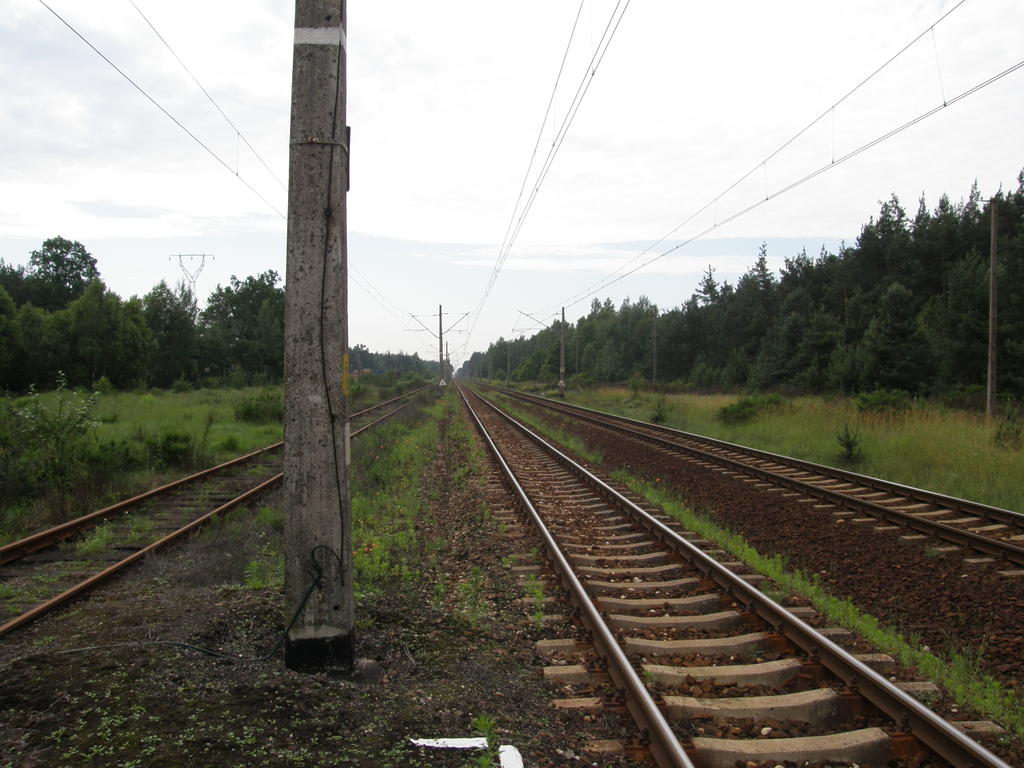 W oddali plac z jednym torem ładunkowym. Widok w stronę Tomaszowa Mazowieckiego. 40,5 km.