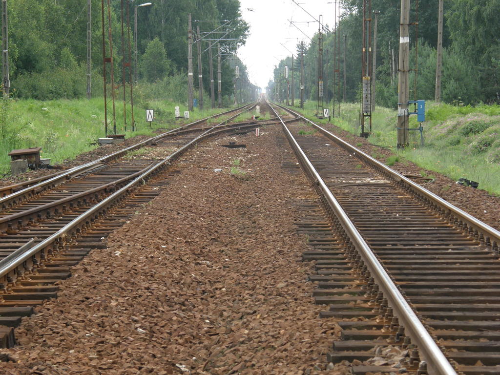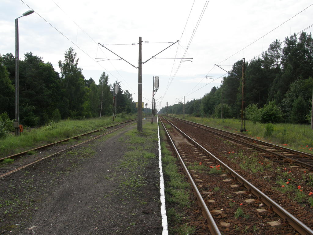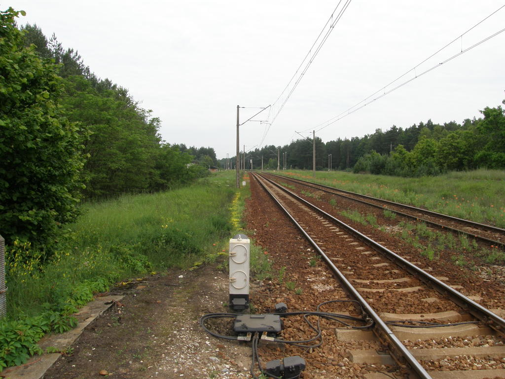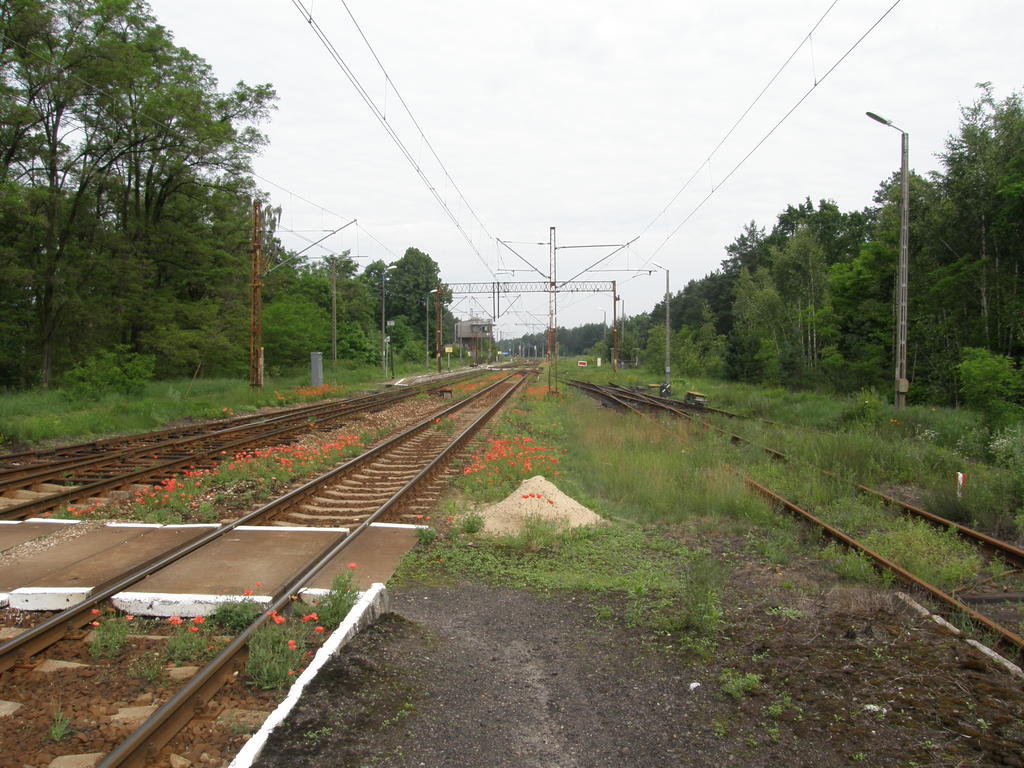 W oddali plac z jednym torem ładunkowym. Widok w stronę Tomaszowa Mazowieckiego. 40,5 km.