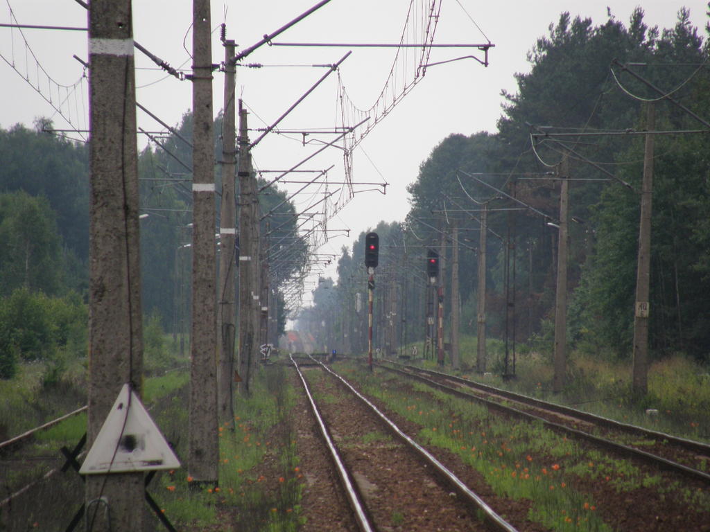 Semafory wjazdowe od strony Tomaszowa Mazowieckiego. Widok w stronę Łodzi. 41,5 km.