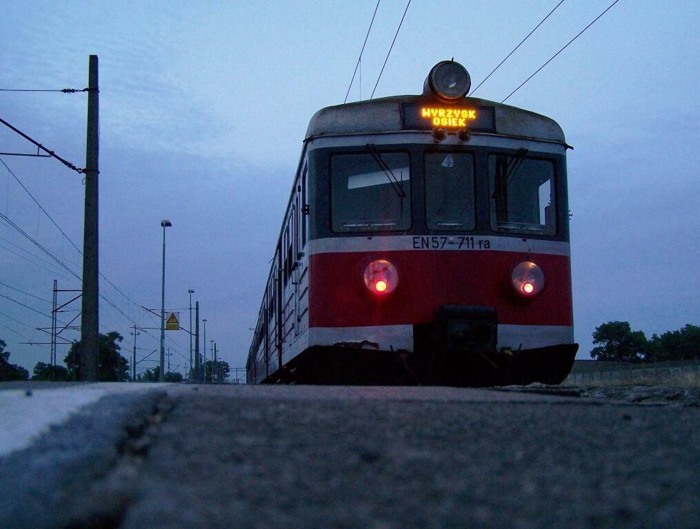 EN57-711 jako wieczorny poc. Os 80920 Piła Gł. - Wyrzysk Osiek. Wtedy jeszcze nocowały na stacji jednostki na pociągach z Piły (obecnie tylko z Bydgoszczy).