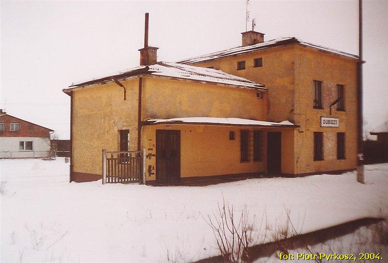 Opis ogólny: Klasyczny przykład stacji zdegradowanej do przystanku osobowego. Peron 1 jest pozbawiony toru, tak więc ruch w obu kierunkach obsługuje peron 2. (info: PixeL, 2005-03-21) Stacja składała sie z toru głównego linii jednotorowej Częstochowa Chorzew S. plus dwa tory bocznicowe (mijanki) w tym jedna z peronem oraz dwa tory bocznicowe, z których jeden używany był do rozładunku węgla itp wraz z peronem i magazynem towarowym (istnieje). Obecnie istnieje tylko jeden tor główny, na końcu stacji przy byłym zjeździe torów zdewastowany domek dróżnika z widniejąca nazwa stacji: Dubitz, elewacja budynku stacyjnego częsciowo odnowiona (nie jest już tak źle jak na zdjęciu). Stacja w obrębie gminy Dubidze ale obsługujaca gminę Strzelce Wielkie i przyległe wsie np. Marzęcice, Wola Jankowska. Woj. łódzkie powiat Pajęczno. Stacja wybudowana w latach 20-tych XX wieku, pociagi relacji: Częstochowa - Chorzew Siemkowice - osobowe kl.2 jeden skład, kursuja codziennie. Budynek stacji = budynek mieszkalny, obok "wc" wolnostojace murowane częsciowo zdewastowane. (info: Wrona Paweł) |