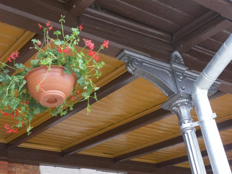 PKP Wadowice. Szczegół wiaty przed budynkiem dworcowym.
