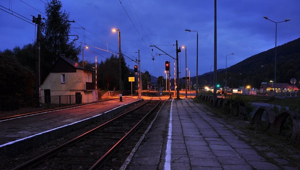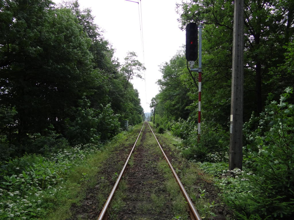 Semafor wjazdowy mijanki Ustroń Polana od strony Skoczowa. Widok w kierunku Wisły. 9,2 km.