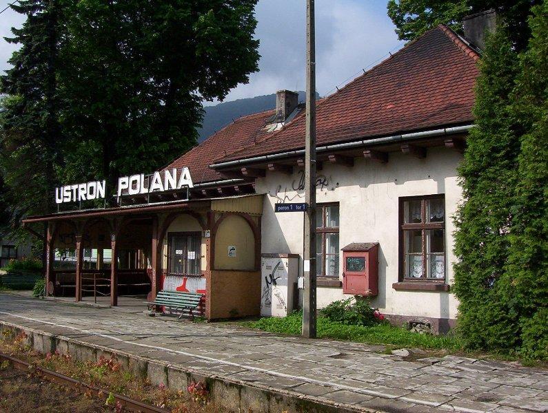Ustroń Polana, Widok na budynek stacyjny z peronu 2.