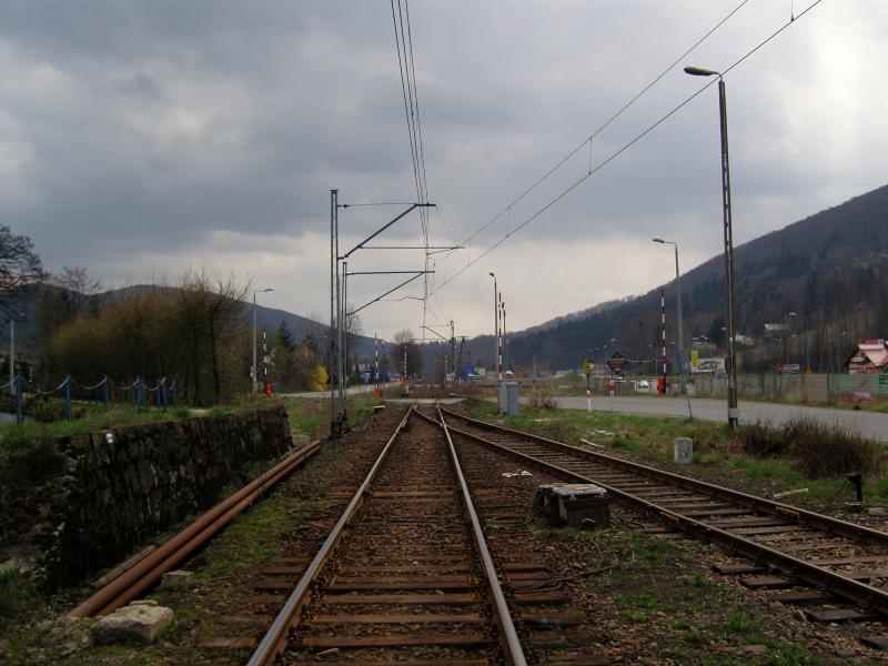Północna głowica rozjazdowa; wyjazd na Skoczów. Nastawnia UP. Parking na ok. 60 miejsc. Widok w kierunku Skoczowa. 9,5 km.
