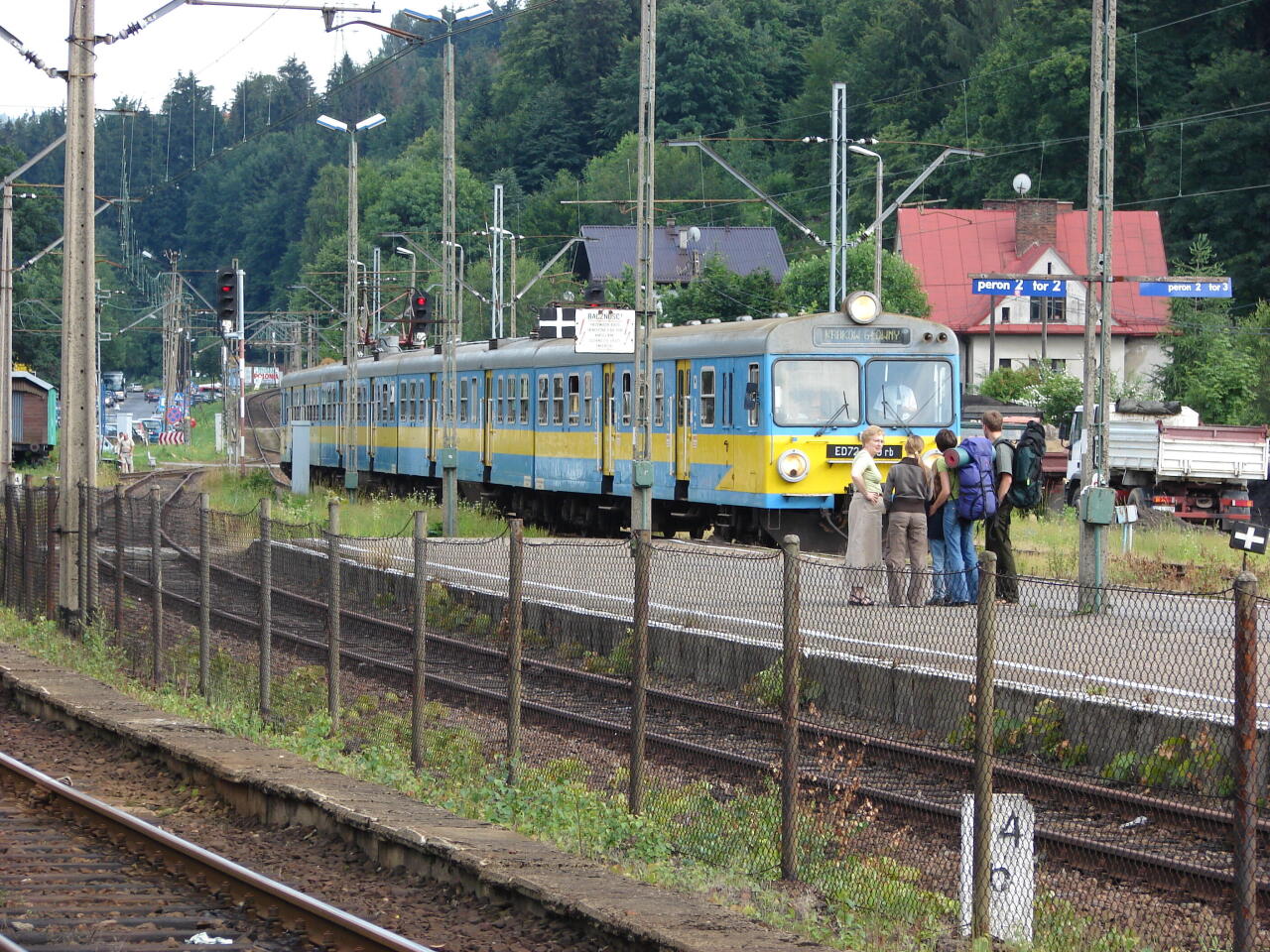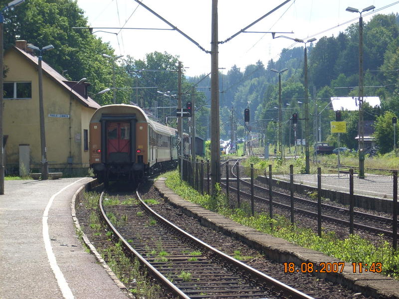 Pociąg "Skrzyczne", widok od strony Goleszowa, wjazd pociągu rel.Gdynia Gł.-Wisła Głębce.