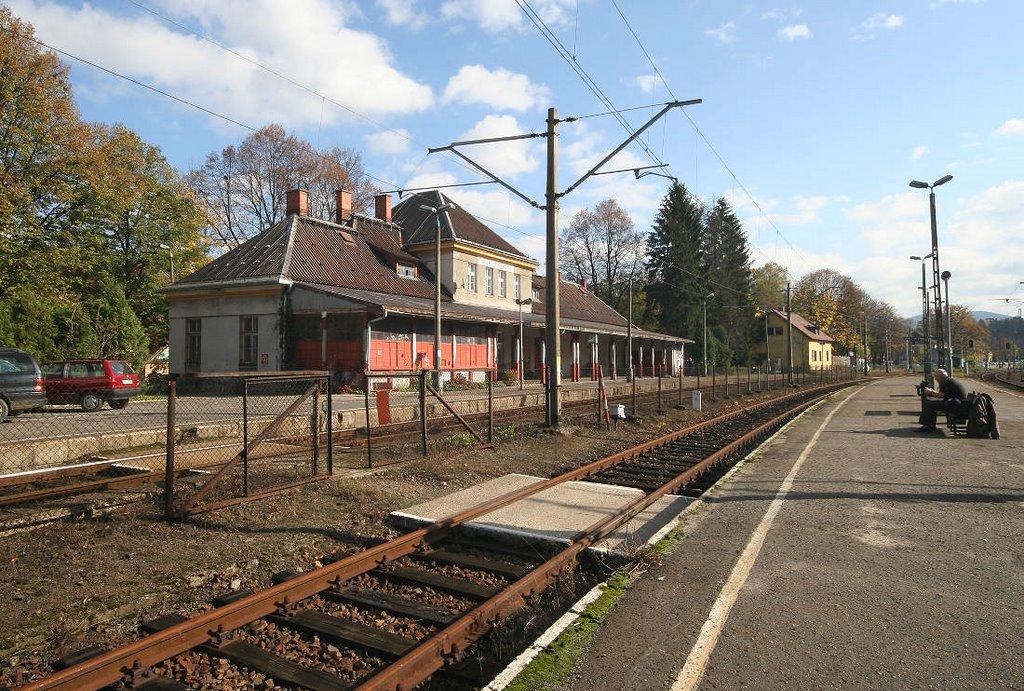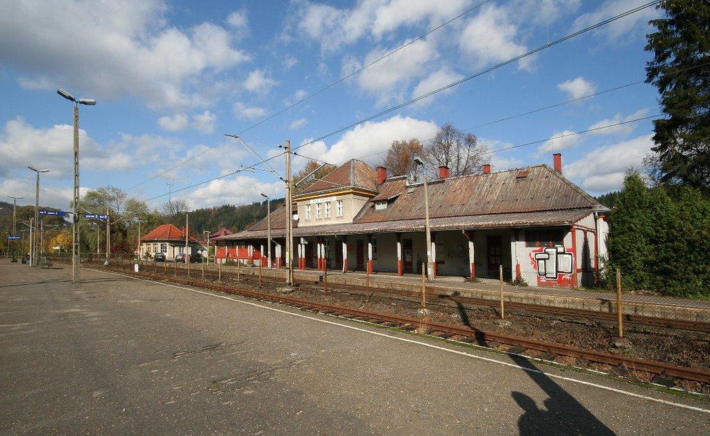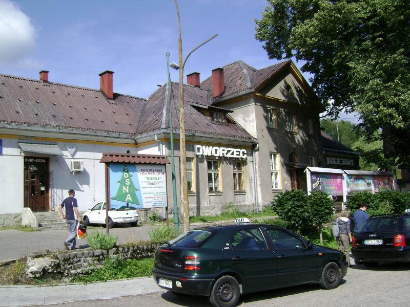 Widok na budynek dworca i perony od strony Ustronia/Goleszowa, w kierunku południowo-wschodnim.