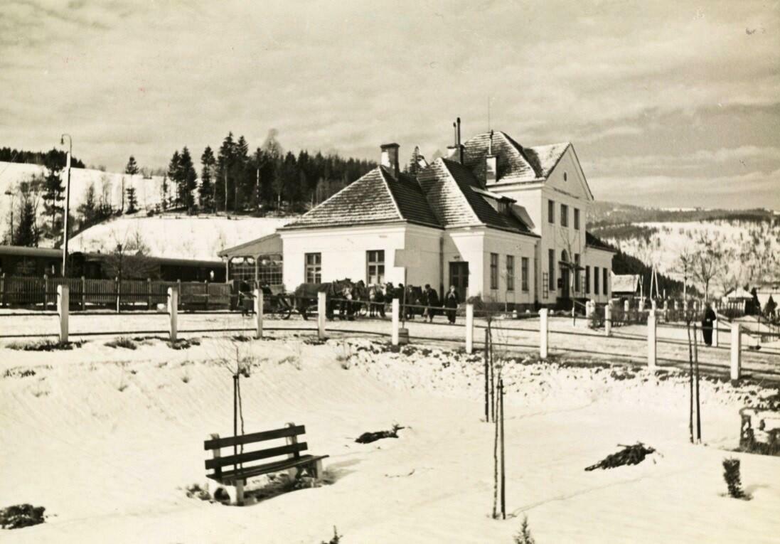 Ówczesny dworzec Wisła (obecnie Wisła Uzdrowisko) od strony podjazdu.