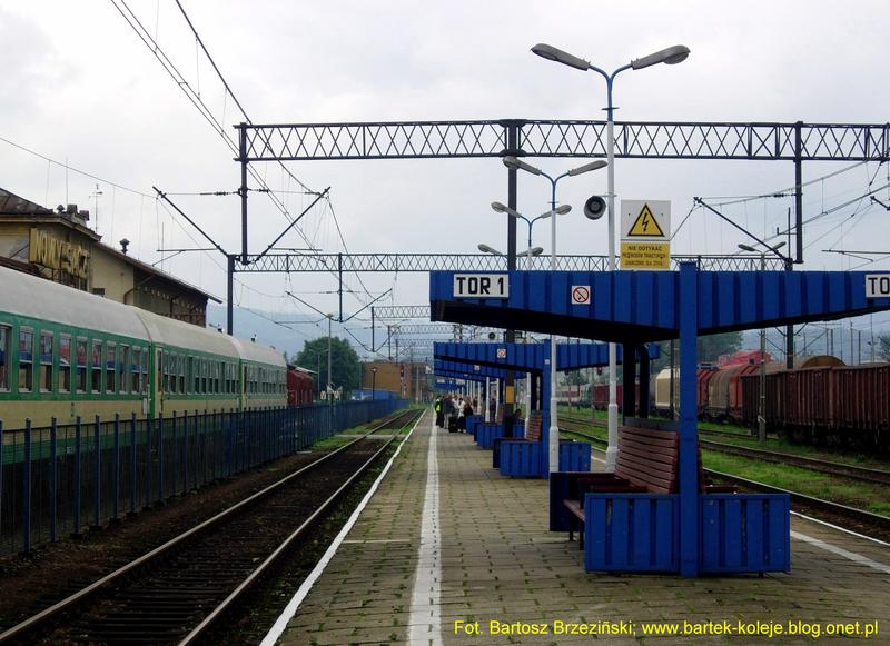 Opis infrastruktury: Lokomotywownia znajduje się na wschód od stacji przy wylocie torów w kierunku Stróż. Stacjonuje w niej kilka SM/SP-42 obsługujących stację oraz linię Nowy Sącz - Chabówka i Krynica - Stróże. Jest na stałe chyba jeden elektrowóz, ale stoi na takim torze dostawczym przy murze z ZNTK, bo sama lokomotywownia nie jest zelektryfikowana. (info: Robert Tomasik, 12-10-2004) Perony na stacji mają ok 450m. (info: tomex, 2007-04-26) W ZNTK są 4 przesuwnice, ale żadnej obrotnicy. (info: Robert Tomasik) Kładka dla pieszych stoi przy zachodnim krańcu peronów i jest wykorzystywana przede wszystkim przez pracowników NEWAG-u (dawne ZNTK Nowy Sącz). Podróżni do pociągów stojących przy peronie 2 dostają się za pomocą przejścia w poziomie torów. Kładka pod wpływem ludzkich kroków (zwłaszcza, kiedy porusza się po niej więcej osób) drga w sposób odczuwalny, także przemieszczanie się po niej nie jest zbyt komfortowe, zwłaszcza dla osób, które nie robią tego codziennie. (info: wasiukibic, 26-09-2008) Opis budynków: Na budynku dworca znajdują się dwa bary, poczekalnia, kantor, poczta, przechowalnia bagażu. Obecny gmach dworca kolejowego wzniesiony został z cegły w latach 1908 -1909. Jego secesyjna, wydłużona parterowa sylwetka jest podzielona trzema piętrowymi pawilonami, z których środkowy - stanowiący główne wejście dworcowe - zwieńczony jest łamanym dachem. Elewacja frontowa dworca zdobiona jest bogato sztukaterią. (Info: Piotr Serwin) Na północny - zachód od budynku dworca znajduje się tzw. Stara Kolonia - zespół domów wielo- i jednorodzinnych zbudowanych dla robotników pracujących w ZNTK Nowy Sącz. (info: wasiukibic, 26-09-2008) |