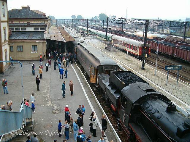 Opis infrastruktury: Lokomotywownia znajduje się na wschód od stacji przy wylocie torów w kierunku Stróż. Stacjonuje w niej kilka SM/SP-42 obsługujących stację oraz linię Nowy Sącz - Chabówka i Krynica - Stróże. Jest na stałe chyba jeden elektrowóz, ale stoi na takim torze dostawczym przy murze z ZNTK, bo sama lokomotywownia nie jest zelektryfikowana. (info: Robert Tomasik, 12-10-2004) Perony na stacji mają ok 450m. (info: tomex, 2007-04-26) W ZNTK są 4 przesuwnice, ale żadnej obrotnicy. (info: Robert Tomasik) Kładka dla pieszych stoi przy zachodnim krańcu peronów i jest wykorzystywana przede wszystkim przez pracowników NEWAG-u (dawne ZNTK Nowy Sącz). Podróżni do pociągów stojących przy peronie 2 dostają się za pomocą przejścia w poziomie torów. Kładka pod wpływem ludzkich kroków (zwłaszcza, kiedy porusza się po niej więcej osób) drga w sposób odczuwalny, także przemieszczanie się po niej nie jest zbyt komfortowe, zwłaszcza dla osób, które nie robią tego codziennie. (info: wasiukibic, 26-09-2008) Opis budynków: Na budynku dworca znajdują się dwa bary, poczekalnia, kantor, poczta, przechowalnia bagażu. Obecny gmach dworca kolejowego wzniesiony został z cegły w latach 1908 -1909. Jego secesyjna, wydłużona parterowa sylwetka jest podzielona trzema piętrowymi pawilonami, z których środkowy - stanowiący główne wejście dworcowe - zwieńczony jest łamanym dachem. Elewacja frontowa dworca zdobiona jest bogato sztukaterią. (Info: Piotr Serwin) Na północny - zachód od budynku dworca znajduje się tzw. Stara Kolonia - zespół domów wielo- i jednorodzinnych zbudowanych dla robotników pracujących w ZNTK Nowy Sącz. (info: wasiukibic, 26-09-2008) |