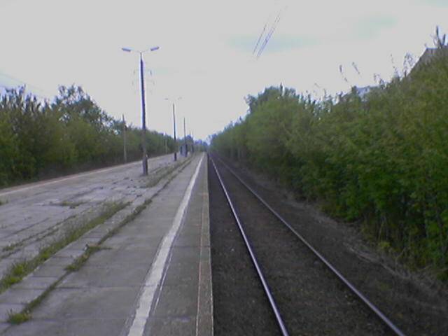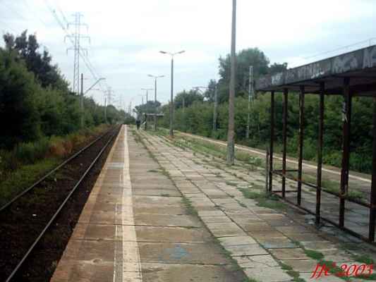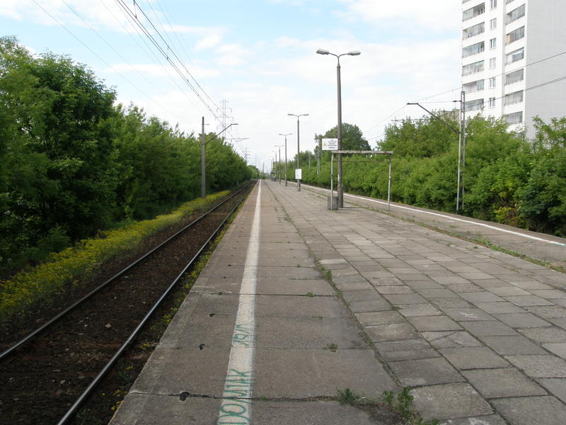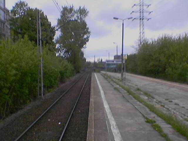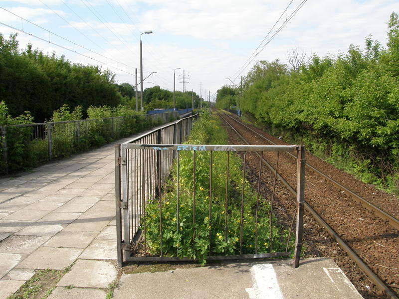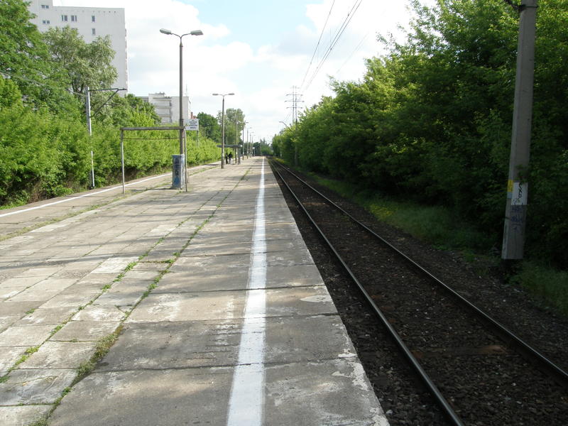 Widok w kierunku Warszawy Woli. Peron przystanku.