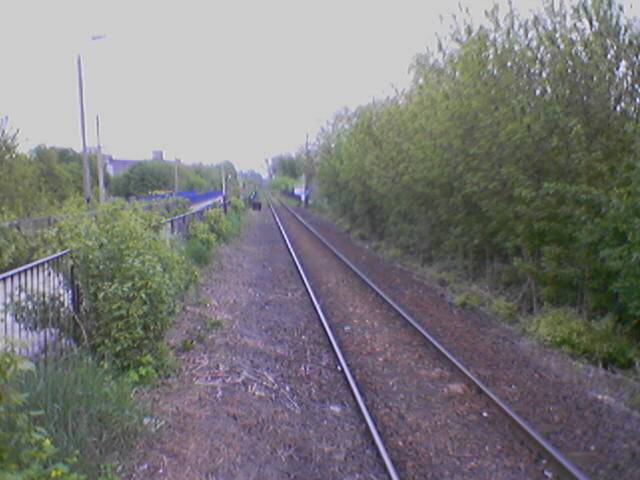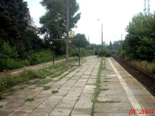 Widok z końca peronu od strony ulicy Wolskiej, w kierunku przystanku Warszawa Wola. Widoczny tor numer jeden.