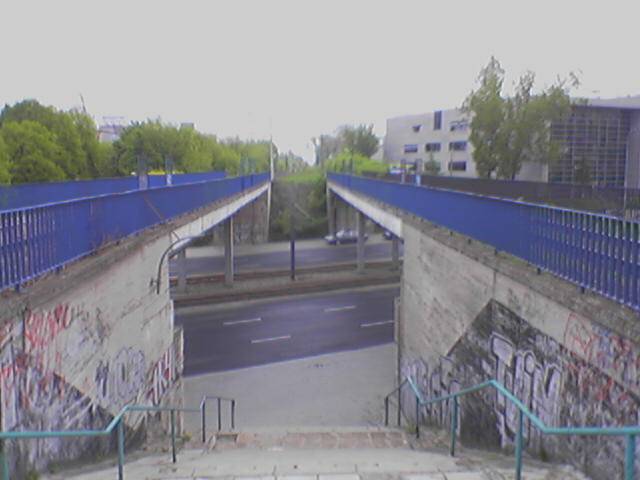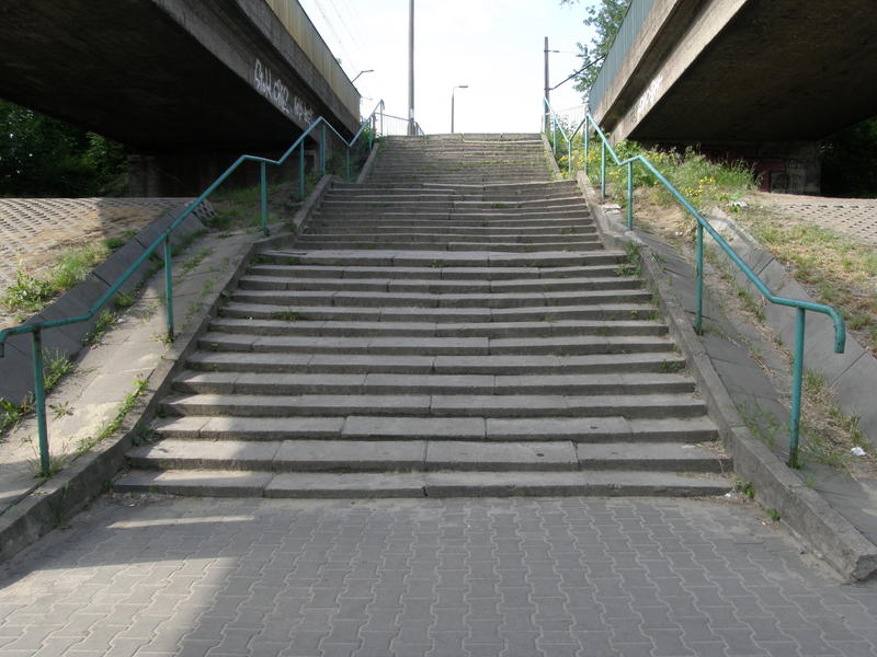 Wiadukty w kierunku przystanku Warszawa Koło, oraz schody schodzące na ulicę Wolską.