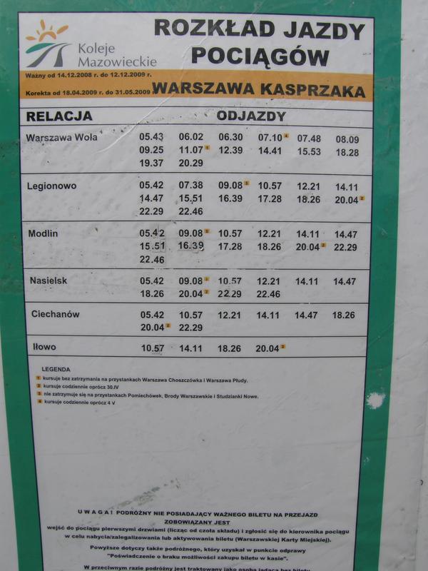 Rozkład jazdy pociągów ważny od 14-12-2008 do 12-12-2009 z korektą od 18-04-2009 do 31-05-2009.