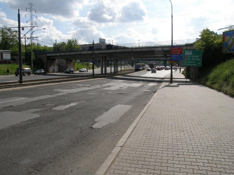 Wiadukt nad ulicą Wolską. W prawo Warszawa Gdańska, w lewo Warszawa Wola.
