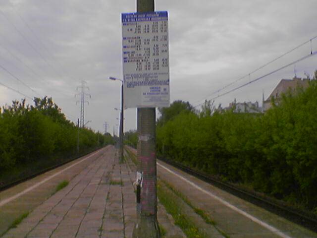 Tablica z rozkładem jazdy, wisząca w 1/3 długości peronu patrząc w stronę przystanku Warszawa Koło. Kiedyś znajdowały się dwie tablice, oddzielne dla każdego kierunku jazdy pociągów, umiejscowione każda w 1/3 długości peronu.