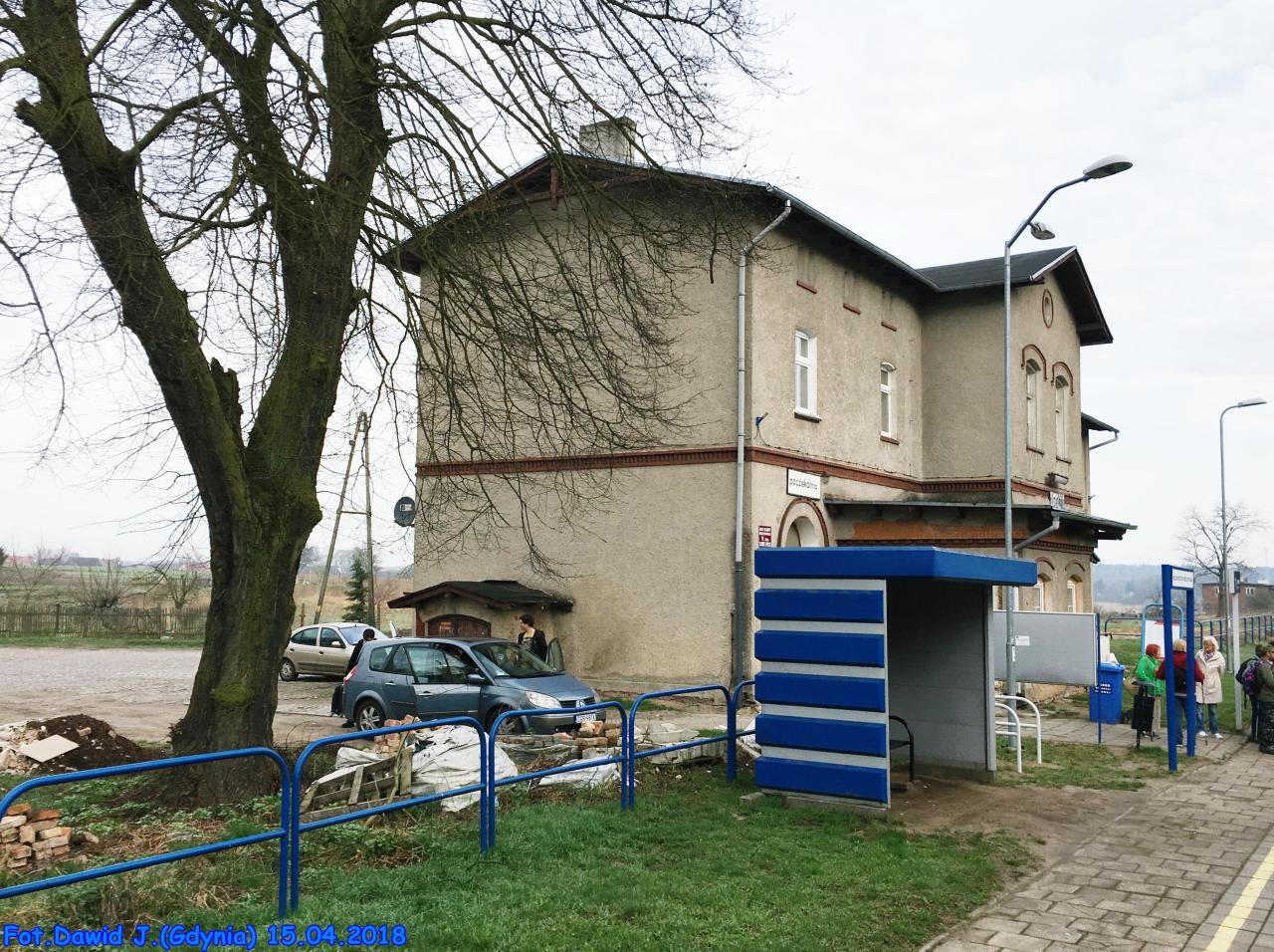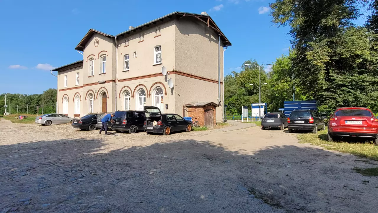 Przystanek PKP Lisie Pole. Budynek dworcowy. Widok od strony peronów.