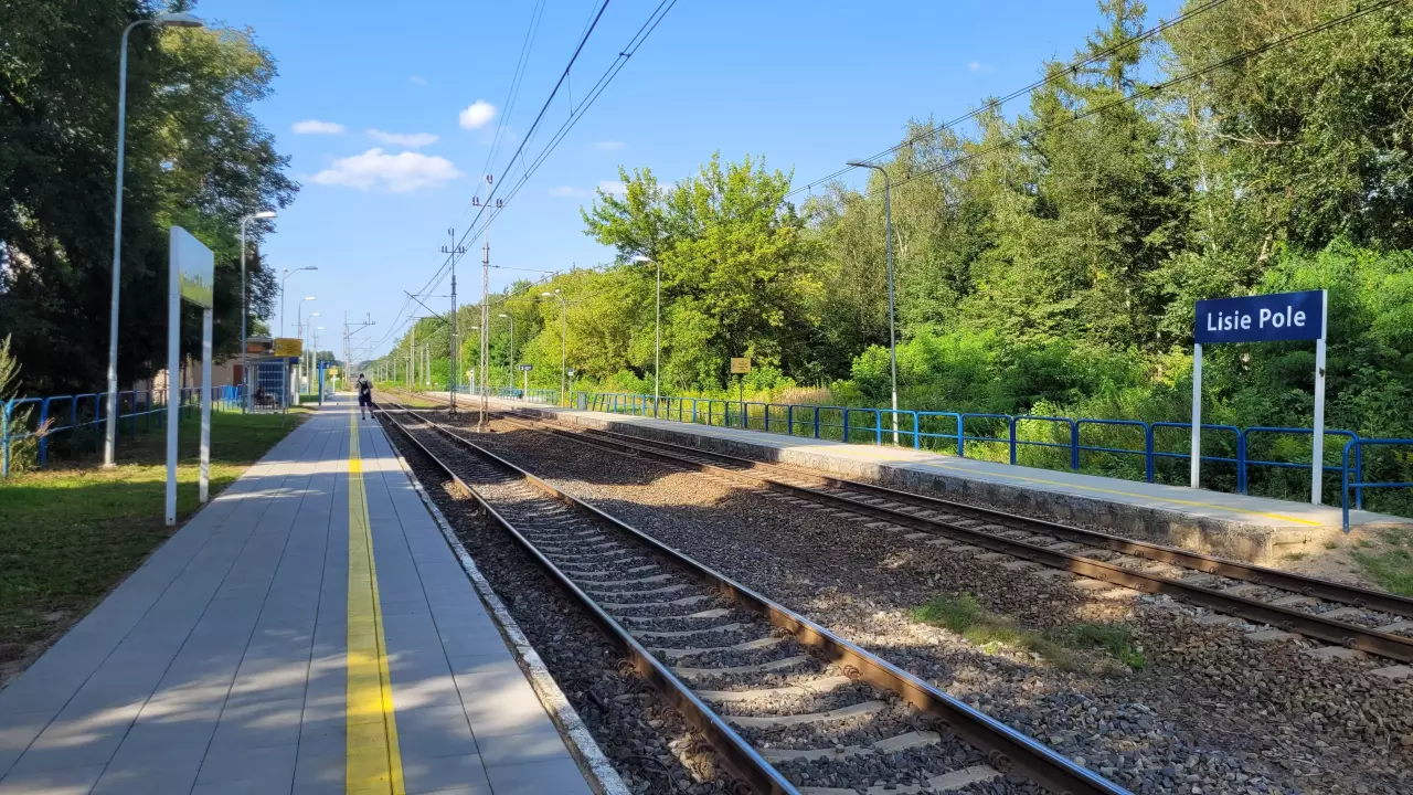 Lisie Pole, widok ogólny z peronu nr 2 w kierunku Kostrzyna;
