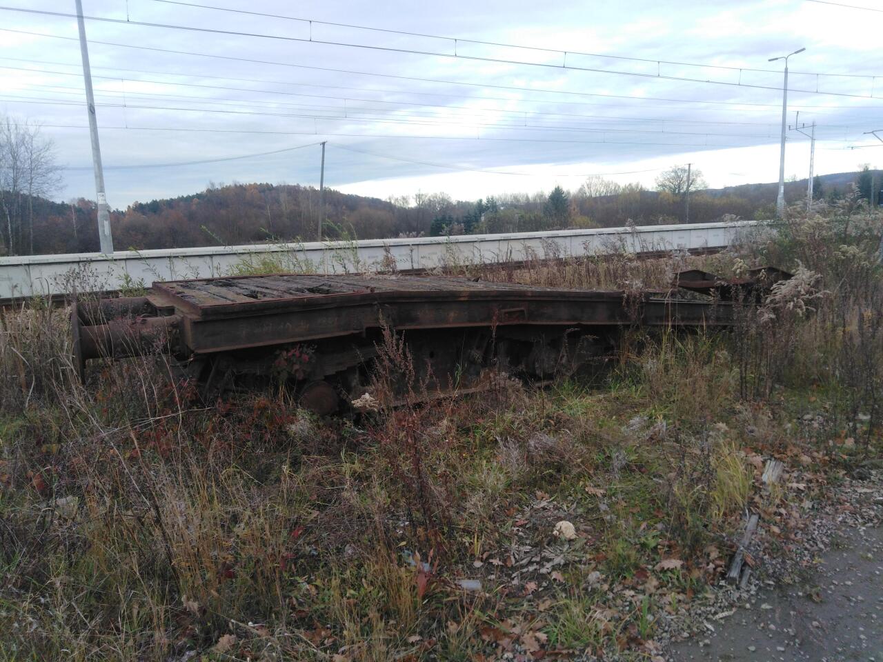 Stoi sobie już… 10 lat taki o to wagonik laweta. Mocno zardzewiały i zapomniany, na odciętym torze bocznym w kierunku rampy. W lewo Skawina, w Kalwaria Zebrzydowska.