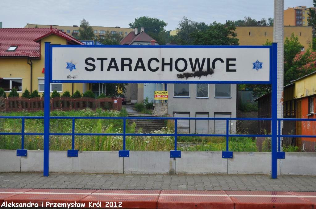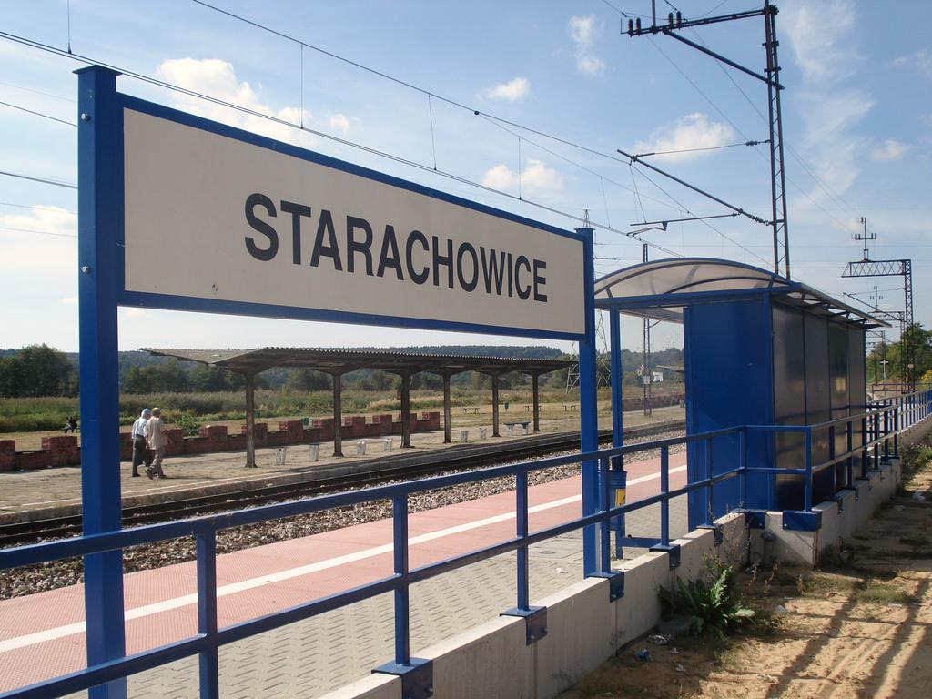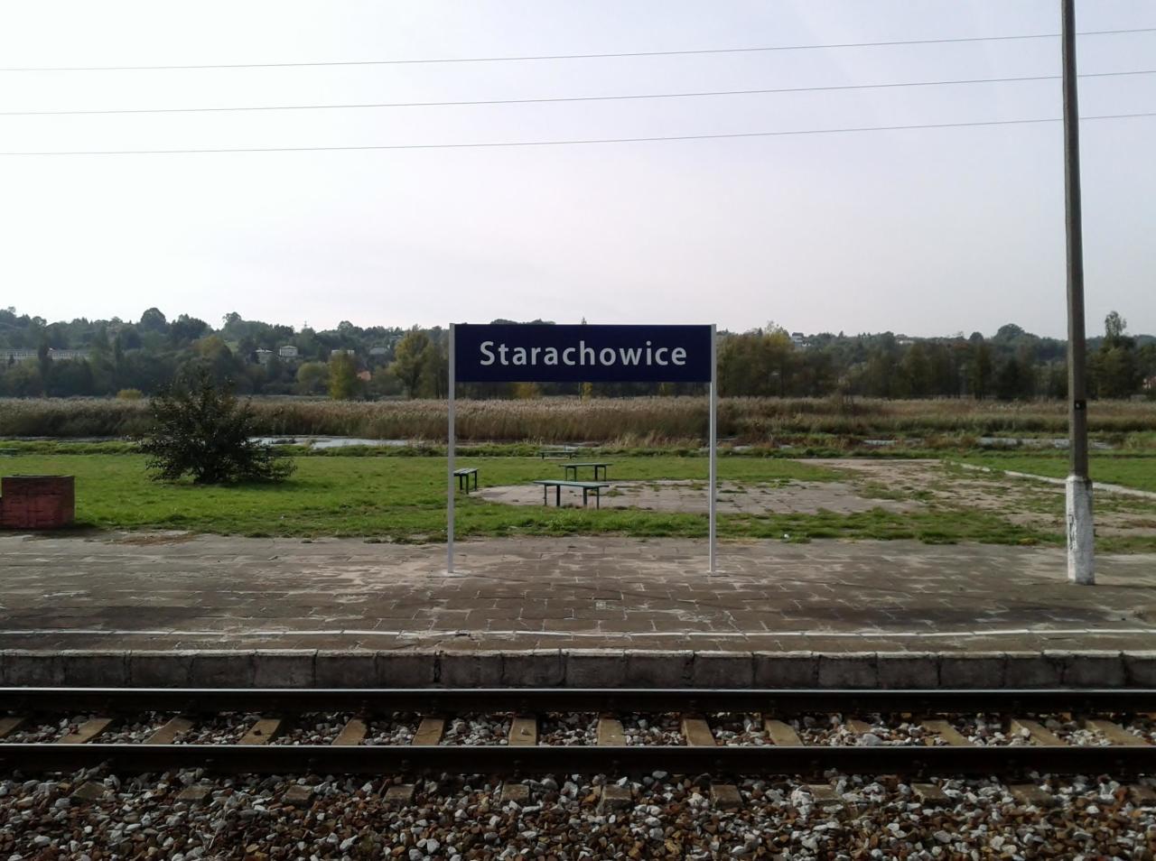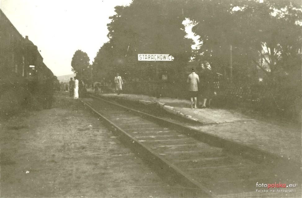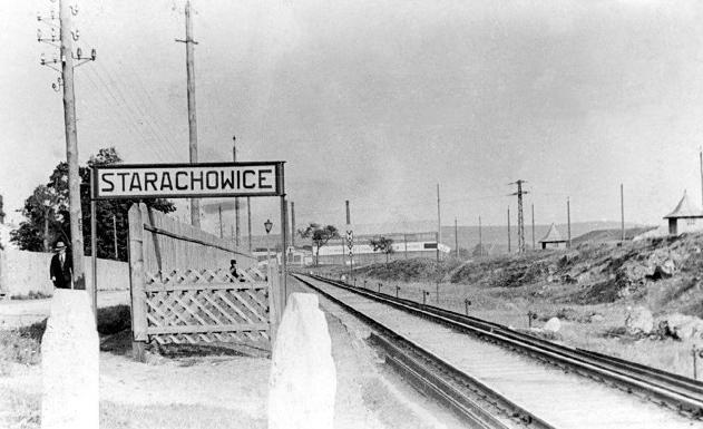 Peron na przystanku PKP Starachowice, który do początku lat 70-tych znajdował się w odległości kilkuset metrów na wschód od obecnego. Zdjęcie pochodzi prawdopodobnie z lat 30-tych XX wieku.