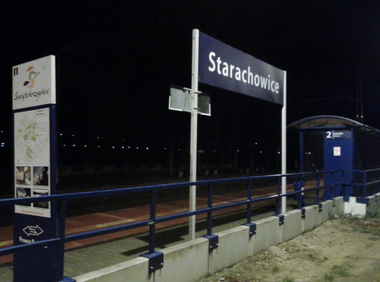 W oczekiwaniu na ostatni pociąg do Skarżyska-Kamiennej. Widok na peron od strony budynku dworca.