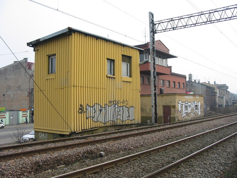 zamknięta nastawnia wykonawcza CBA 2 Za nią nastawnia dysponująca CB. Widok w kierunku wschodnim: Katowice, Ruda Kochłowice/Panewnik.