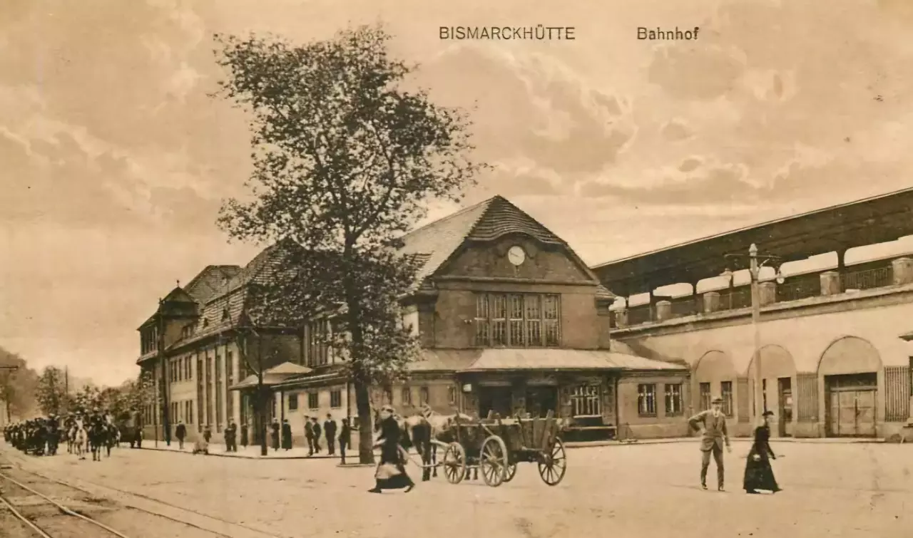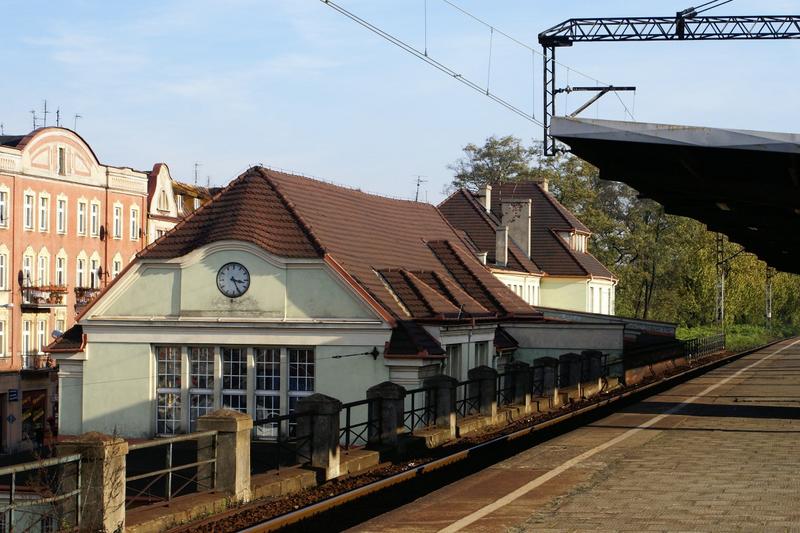 Peron 1 i budynek dworca. Widok w kierunku północno-zachodnim, od strony wjazdów z Katowic, Rudy Kochłowice/Panewnika.