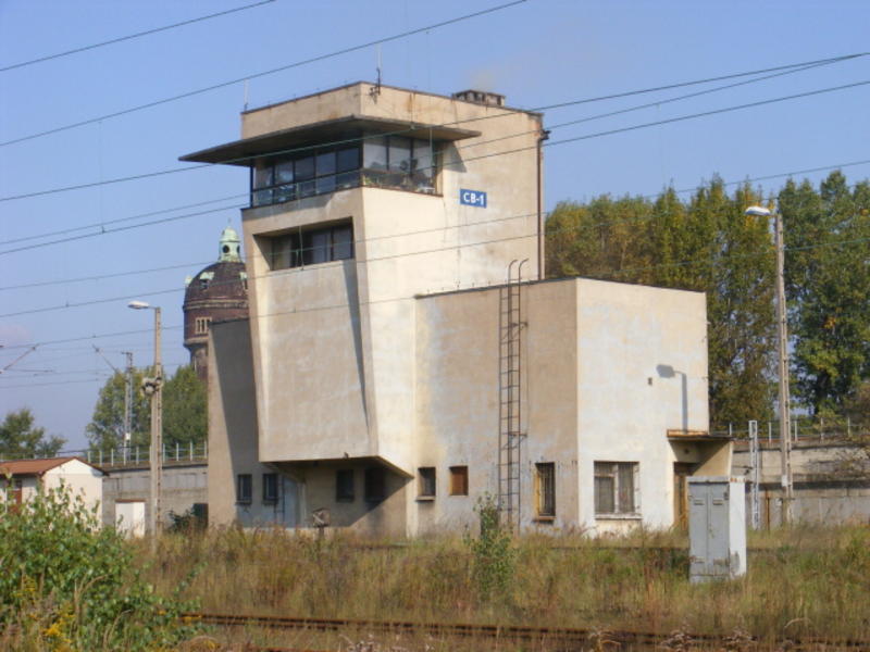 Nastawnia wykonawcza, kiedyś CBA3, obecnie CB1. Widok w kierunku północno-wschodnim; w prawo perony, w lewo (dołem, przed nastawnia) Ruda Chebzie, (za nastawnią, dołem) Chorzów Stary/Bytom), (za nastawnią, górą) Ruda Chebzie.